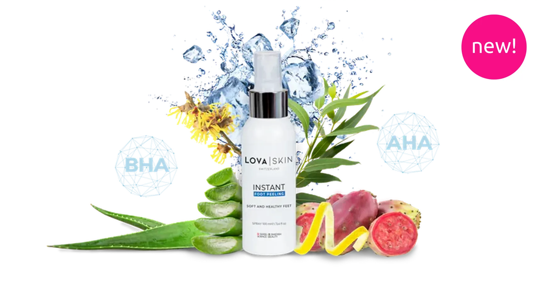 Easily remove your dry, rough skin and calluses in ONLY 2 MINUTES with the Instant Foot Peel spray from LOVASKIN. You'll never have to hide your feet again. Swiss-made with active ingredients found in nature.
