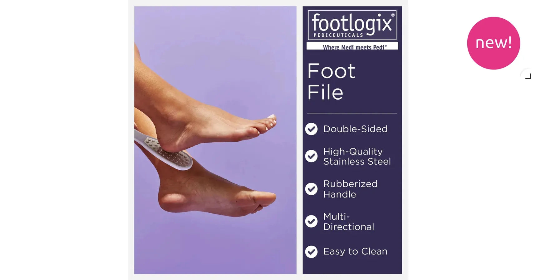 Footlogix® Professional-Grade Dual-Sided Foot File– Made with stainless steel and two grit levels to exfoliate and refine safely—without damaging healthy skin.